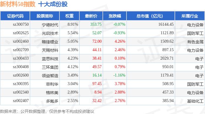 证券之星消息,1月15日,新材料50(970042)指数报收于4054.34点,涨1.58%,成交1023.61亿元,换手率3.69%。当日该指数成份股中,上涨的有29家,珂玛科技以12.09%的涨幅领涨,下跌的有19家,惠城环保以5.49%的跌幅领跌。
