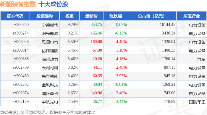 资金流向方面,新能装备(970043)指数成份股当日主力资金净流入合计9.53亿元,游资资金净流出合计7.31亿元,散户资金净流出合计2.23亿元。成份股资金流向详情见下表: