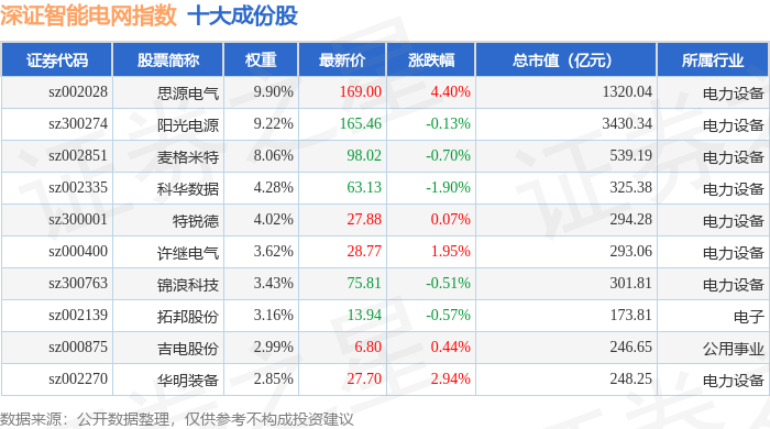 证券之星消息,1月15日,深证智能电网(970054)指数报收于4289.88点,涨0.18%,成交394.48亿元,换手率5.25%。当日该指数成份股中,上涨的有19家,科陆电子以8.45%的涨幅领涨,下跌的有31家,中恒电气以7.76%的跌幅领跌。