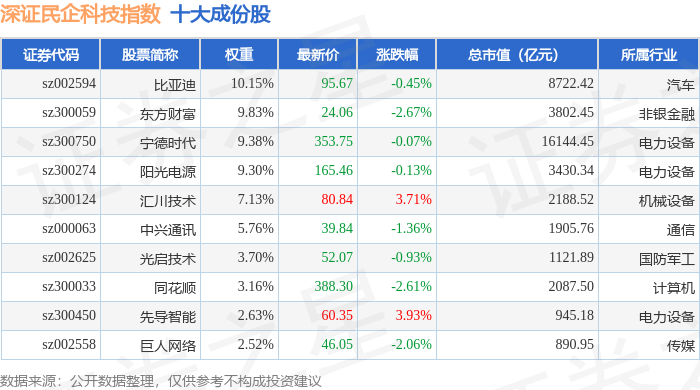 深证民企科技(970059)指数十大成份股详情如下: