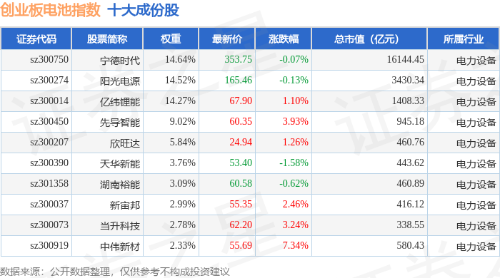 近10日内创业板电池(970081)指数成份股做了调整,剔除了1只股票。