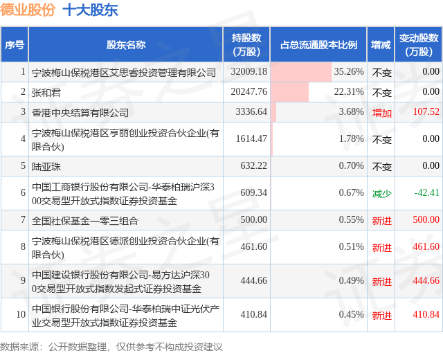 根据德业股份2025年三季报公布的十大股东详情如下:
