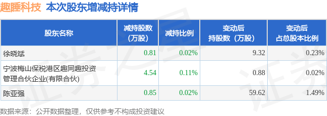 根据趣睡科技2025年三季报公布的十大股东详情如下: