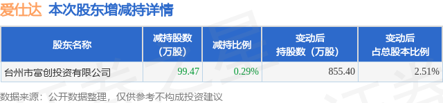 股东增减持详情见下表: