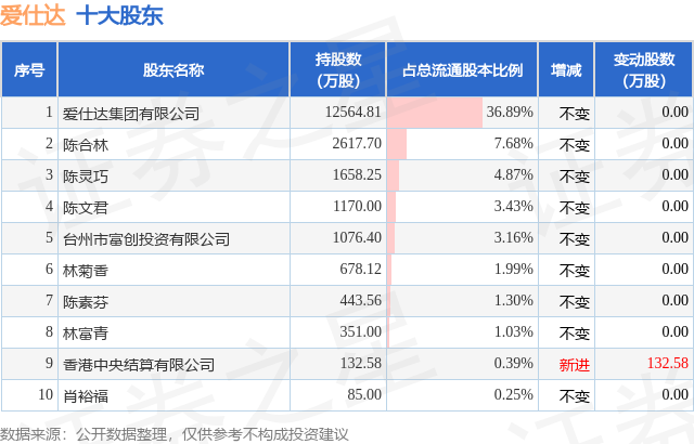 根据爱仕达2025年三季报公布的十大股东详情如下: