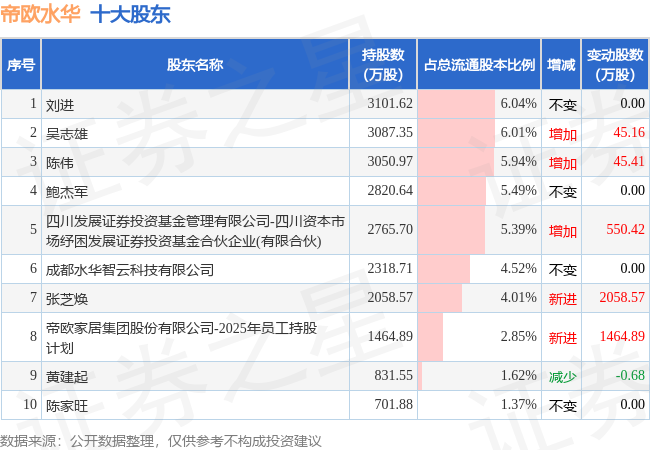 根据帝欧水华2025年三季报公布的十大股东详情如下: