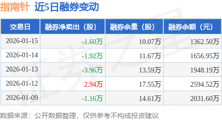 证券之星消息,1月15日,指南针(300803)融资买入5.74亿元,融资偿还5.52亿元,融资净买入2133.98万元,融资余额46.3亿元。