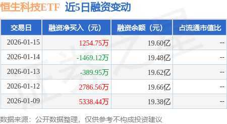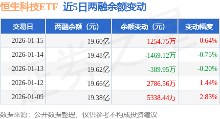 证券之星消息,1月15日,恒生科技ETF(513130)融资买入10.44亿元,融资偿还10.31亿元,融资净买入1254.75万元,融资余额19.6亿元。