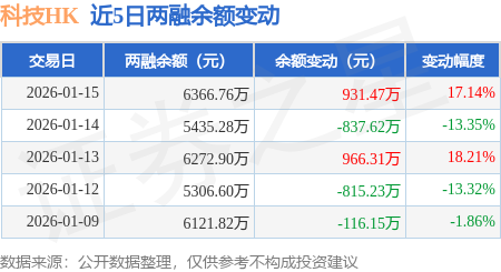 证券之星消息,1月15日,科技HK(159262)融资买入2597.17万元,融资偿还1665.7万元,融资净买入931.47万元,融资余额6366.76万元。