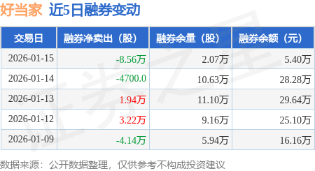 证券之星消息,1月15日,好当家(600467)融资买入2599.86万元,融资偿还1816.47万元,融资净买入783.39万元,融资余额2.07亿元,近20个交易日中有13个交易日出现融资净买入。