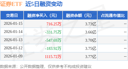 证券之星消息,1月15日,证券ETF(159841)融资买入6122.37万元,融资偿还5406.12万元,融资净买入716.25万元,融资余额3.73亿元。