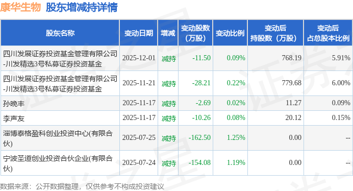 该股近半年内有股东持股变动,合计净减持369.24万股,股东增减持明细如下表:
