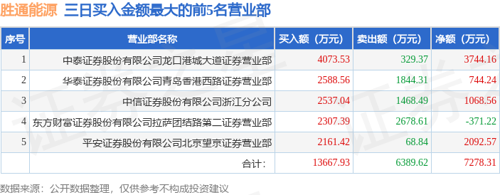 证券之星消息,沪深交易所2026年1月16日公布的交易公开信息显示,胜通能源(001331)因连续三个交易日内,跌幅偏离值累计达到20%的证券登上龙虎榜。此次是近5个交易日内第1次上榜。