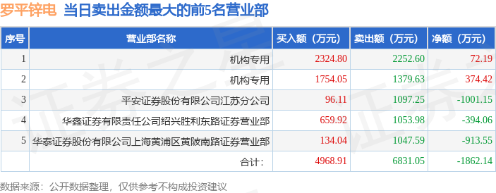 证券之星消息,沪深交易所2026年1月16日公布的交易公开信息显示,罗平锌电(002114)因日振幅值达到15%的前5只证券登上龙虎榜。此次是近5个交易日内第1次上榜。