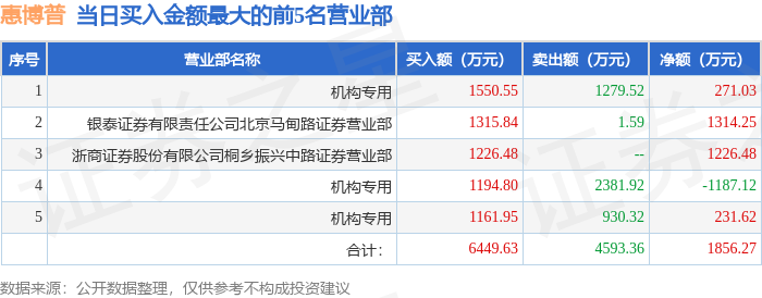 从龙虎榜公布的当日买卖数据来看,机构合计净卖出2653.56万元。