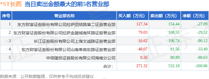 证券之星消息,沪深交易所2026年1月16日公布的交易公开信息显示,*ST长药(300391)因日跌幅达到15%的前5只证券,连续三个交易日内,跌幅偏离值累计达到30%的证券登上龙虎榜。此次是近5个交易日内第1次上榜。
