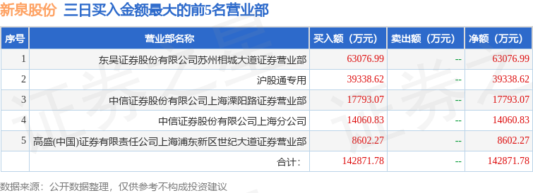 证券之星消息,沪深交易所2026年1月16日公布的交易公开信息显示,新泉股份(603179)因非ST、*ST和S证券连续三个交易日内收盘价格涨幅偏离值累计达到20%的证券登上龙虎榜。此次是近5个交易日内第1次上榜。