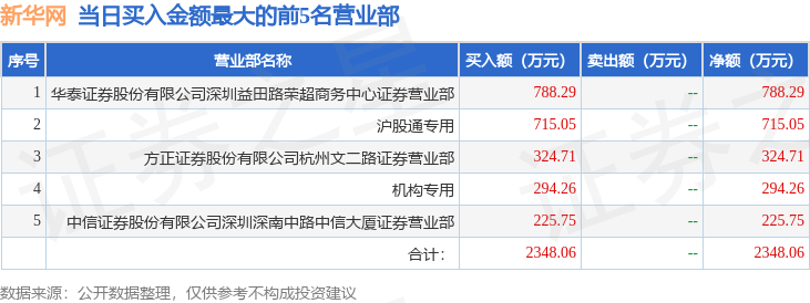 从龙虎榜公布的当日买卖数据来看,机构合计净买入294.26万元,北向资金合计净买入715.05万元。徐留胜等知名游资榜上有名。(知名游资徐留胜一般指华泰证券股份有限公司深圳益田路荣超商务中心证券营业部席位,根据市场资料整理,仅供参考)