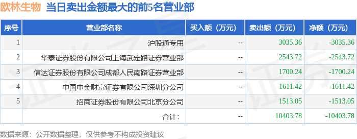 证券之星消息,沪深交易所2026年1月16日公布的交易公开信息显示,欧林生物(688319)因有价格涨跌幅限制的日收盘价格跌幅达到15%的前五只证券登上龙虎榜。此次是近5个交易日内第1次上榜。