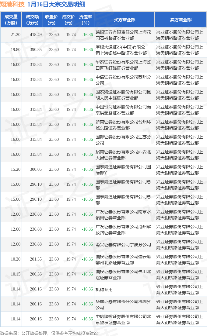 证券之星消息,1月16日翔港科技发生大宗交易,交易数据如下: