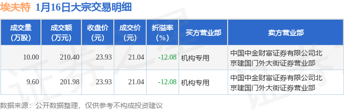证券之星消息,1月16日埃夫特发生大宗交易,交易数据如下: