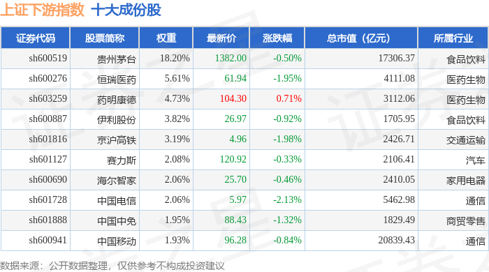 上证下游(000096)指数十大成份股详情如下:
