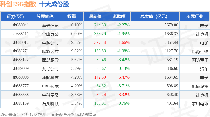 科创ESG(000691)指数十大成份股详情如下: