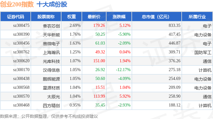 证券之星消息,1月16日,创业200(399019)指数报收于5048.89点,跌0.75%,成交1900.63亿元,换手率6.1%。当日该指数成份股中,上涨的有79家,斯菱智驱以12.71%的涨幅领涨,下跌的有118家,汉得信息以12.17%的跌幅领跌。