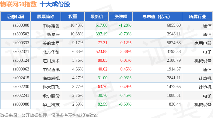 资金流向方面,物联网50(399285)指数成份股当日主力资金净流入合计6.64亿元,游资资金净流出合计8.36亿元,散户资金净流入合计1.72亿元。成份股资金流向详情见下表: