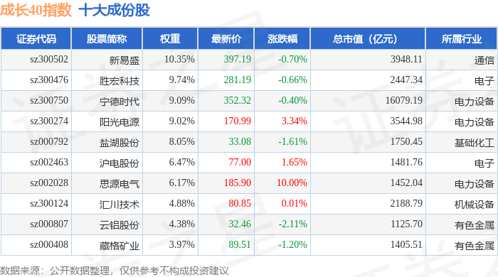 证券之星消息,1月16日,成长40(399326)指数报收于6637.21点,涨0.41%,成交1054.15亿元,换手率2.89%。当日该指数成份股中,上涨的有14家,思源电气以10.0%的涨幅领涨,下跌的有26家,捷顺科技以9.99%的跌幅领跌。