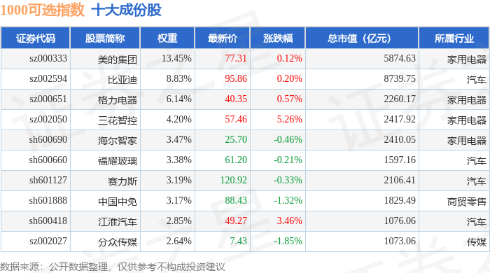 1000可选(399384)指数十大成份股详情如下: