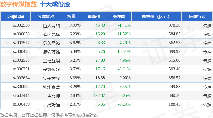 证券之星消息,1月16日,数字传媒(399434)指数报收于2755.51点,跌5.37%,成交799.49亿元,换手率6.03%。当日该指数成份股中,上涨的有2家,万润科技以3.82%的涨幅领涨,下跌的有45家,蓝色光标以11.52%的跌幅领跌。