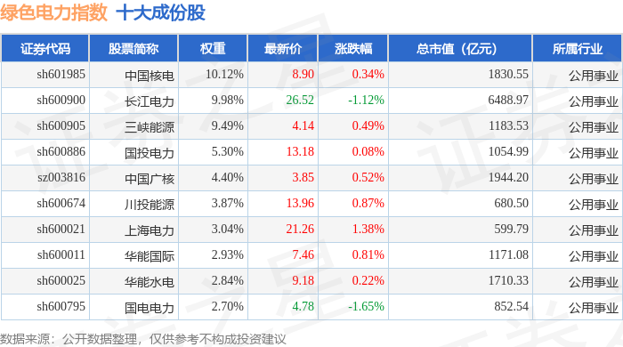 资金流向方面,绿色电力(399438)指数成份股当日主力资金净流出合计8.88亿元,游资资金净流入合计5.35亿元,散户资金净流入合计3.52亿元。成份股资金流向详情见下表: