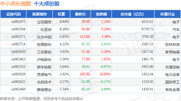 证券之星消息,1月16日,中小成长(399602)指数报收于1367.73点,涨0.72%,成交1635.51亿元,换手率3.61%。当日该指数成份股中,上涨的有46家,思源电气以10.0%的涨幅领涨,下跌的有52家,盛新锂能以5.56%的跌幅领跌。