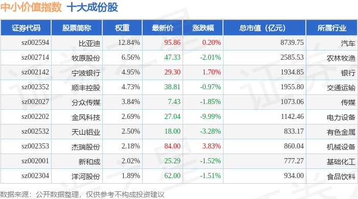 中小价值(399604)指数十大成份股详情如下:
