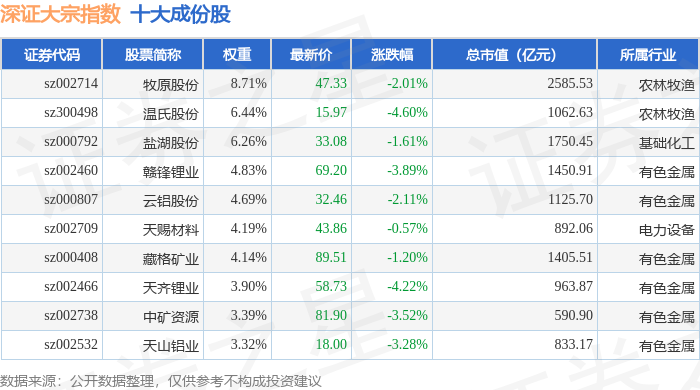 深证大宗(399639)指数十大成份股详情如下: