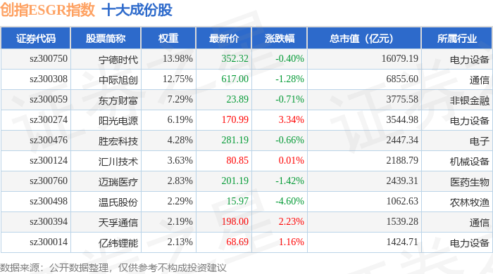 创指ESGR(470028)指数十大成份股详情如下:
