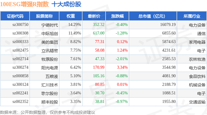 100ESG增强R(470033)指数十大成份股详情如下: