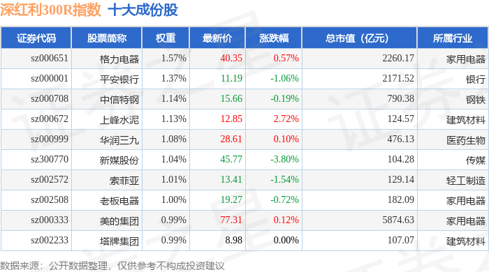 证券之星消息,1月16日,深红利300R(470062)指数报收于8492.08点,跌0.27%,成交2790.98亿元,换手率2.35%。当日该指数成份股中,上涨的有130家,汉缆股份以10.1%的涨幅领涨,下跌的有161家,金风科技以9.99%的跌幅领跌。
