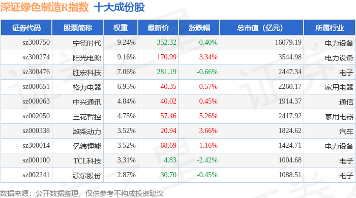 深证绿色制造R(470069)指数十大成份股详情如下:
