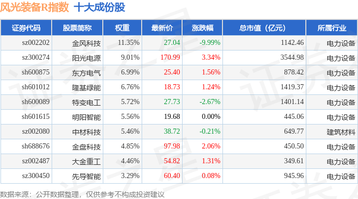 风光装备R(480026)指数十大成份股详情如下: