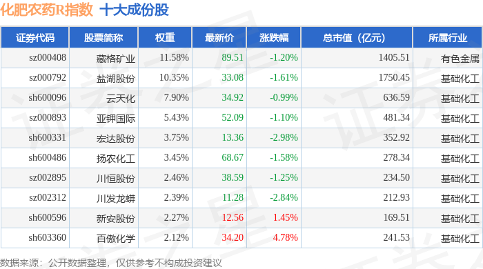 资金流向方面,化肥农药R(480035)指数成份股当日主力资金净流出合计5.61亿元,游资资金净流入合计5678.6万元,散户资金净流入合计4.87亿元。成份股资金流向详情见下表: