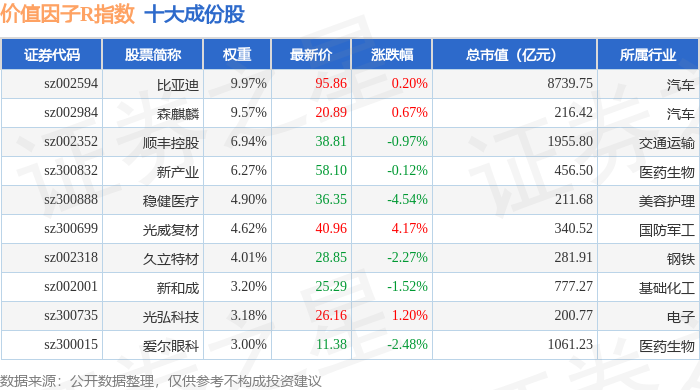 价值因子R(480056)指数十大成份股详情如下: