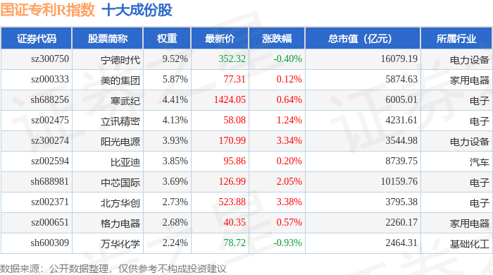国证专利R(480070)指数十大成份股详情如下: