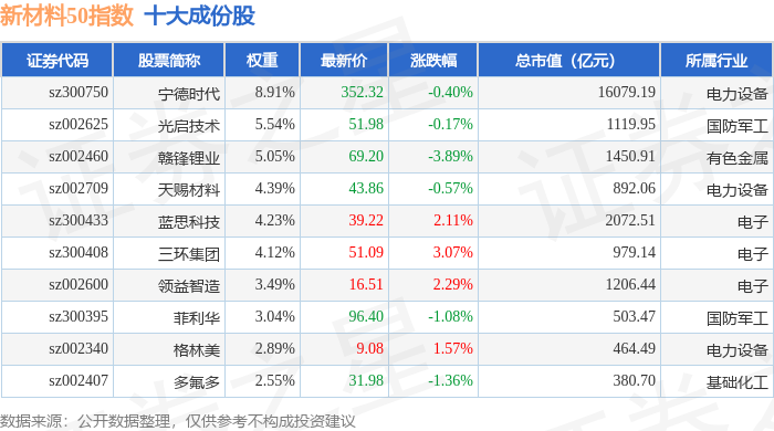 证券之星消息,1月16日,新材料50(970042)指数报收于4068.21点,涨0.34%,成交1059.44亿元,换手率3.85%。当日该指数成份股中,上涨的有27家,中简科技以10.42%的涨幅领涨,下跌的有23家,天华新能以5.9%的跌幅领跌。