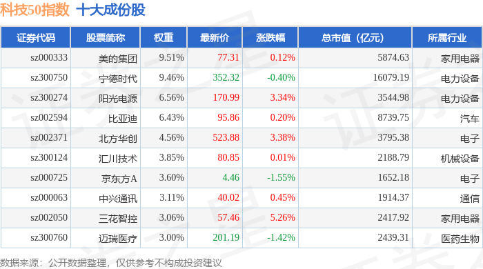 科技50(970080)指数十大成份股详情如下: