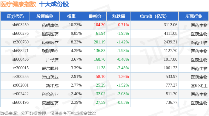 近10日内医疗健康(980016)指数成份股做了调整,新纳入了1只股票,剔除了1只股票。
