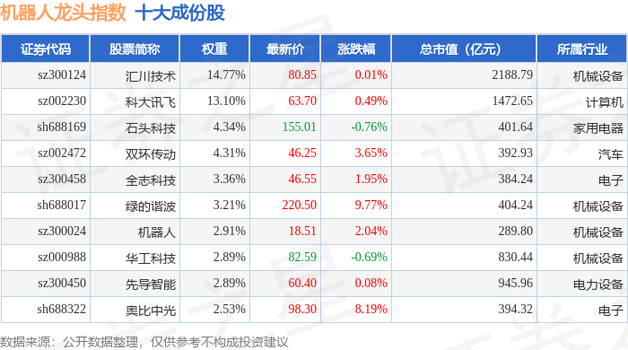 资金流向方面,机器人龙头(980071)指数成份股当日主力资金净流入合计20.33亿元,游资资金净流出合计12.74亿元,散户资金净流出合计7.58亿元。成份股资金流向详情见下表: