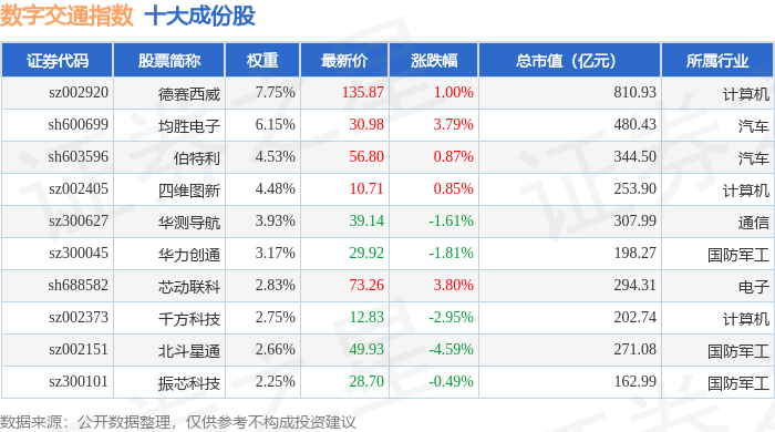 数字交通(980075)指数十大成份股详情如下: