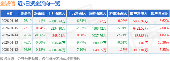 1月16日的资金流向数据方面,主力资金净流出5084.24万元,占总成交额6.64%,游资资金净流入17.27万元,占总成交额0.02%,散户资金净流入5066.97万元,占总成交额6.62%。
